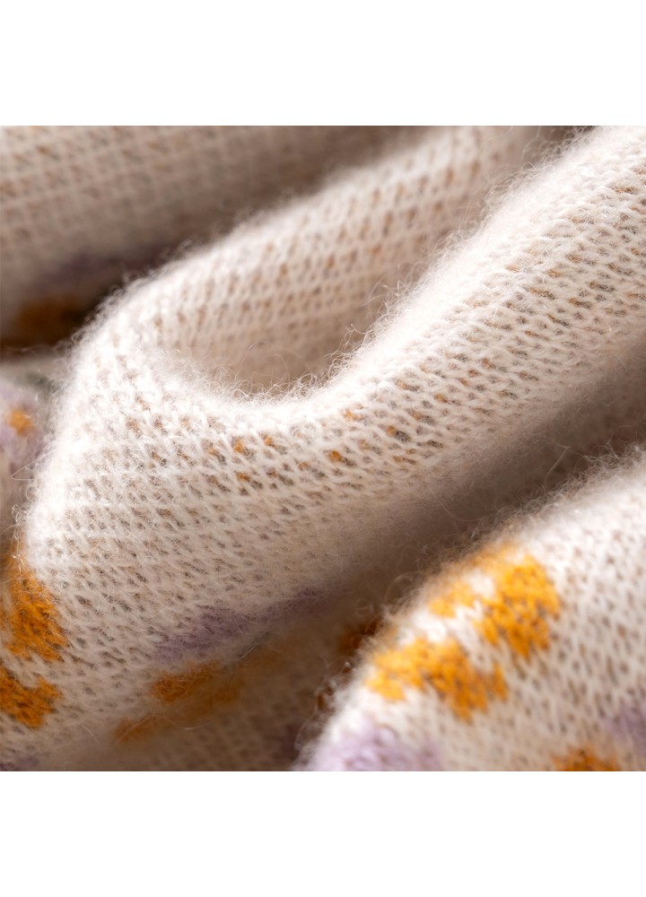 Material and Craftsmanship: The shawl is made of high-quality cashmere, with soft and delicate fibers, a light and smooth feel, and comfortable against the skin without causing itching. It uses exquisite floral jacquard knitting techniques, resulting in a clear and three-dimensional pattern that showcases an elegant and delicate design while ensuring the shawl's softness and durability.