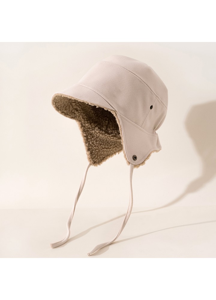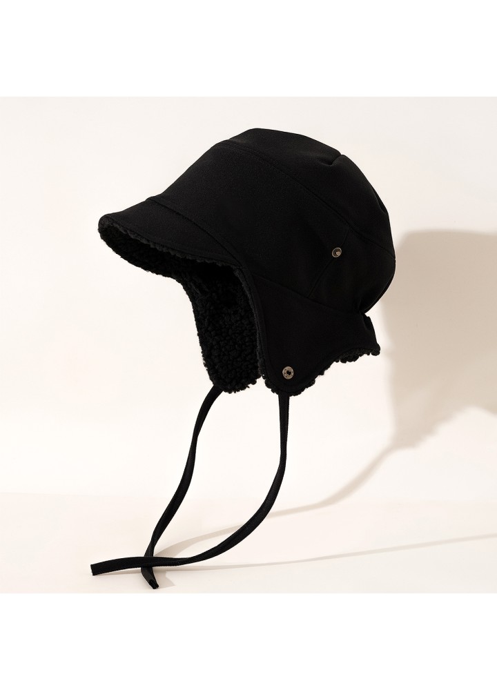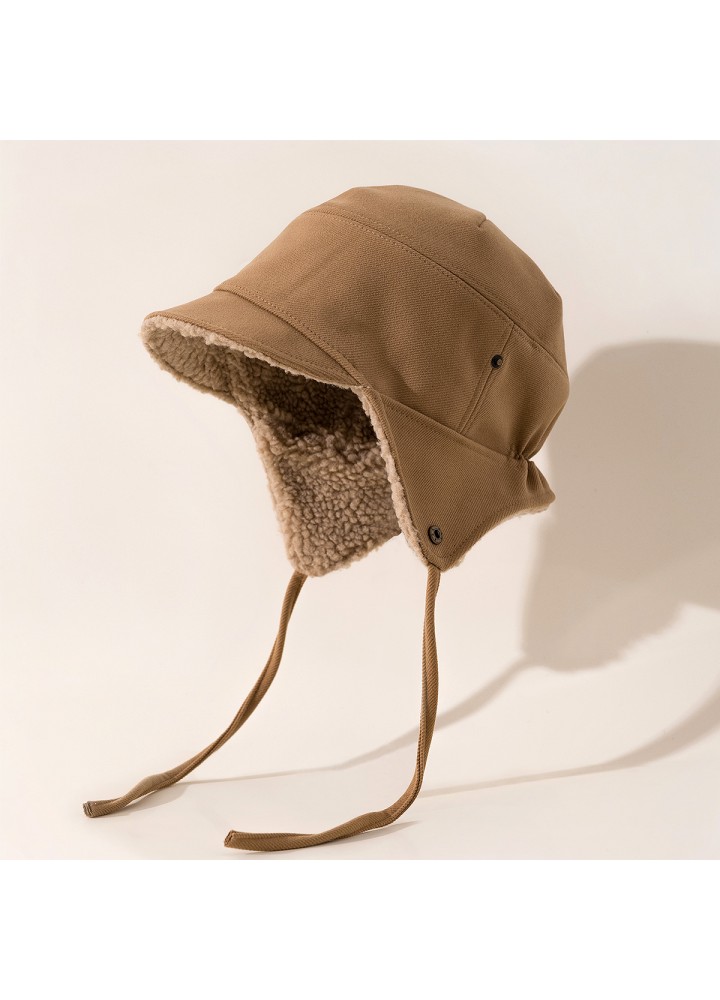 The hat body features a thickened fleece lining. The faux lambswool lining effectively retains heat, forming a stable insulating layer and reducing cold air intrusion, making it suitable for wearing in cold environments.