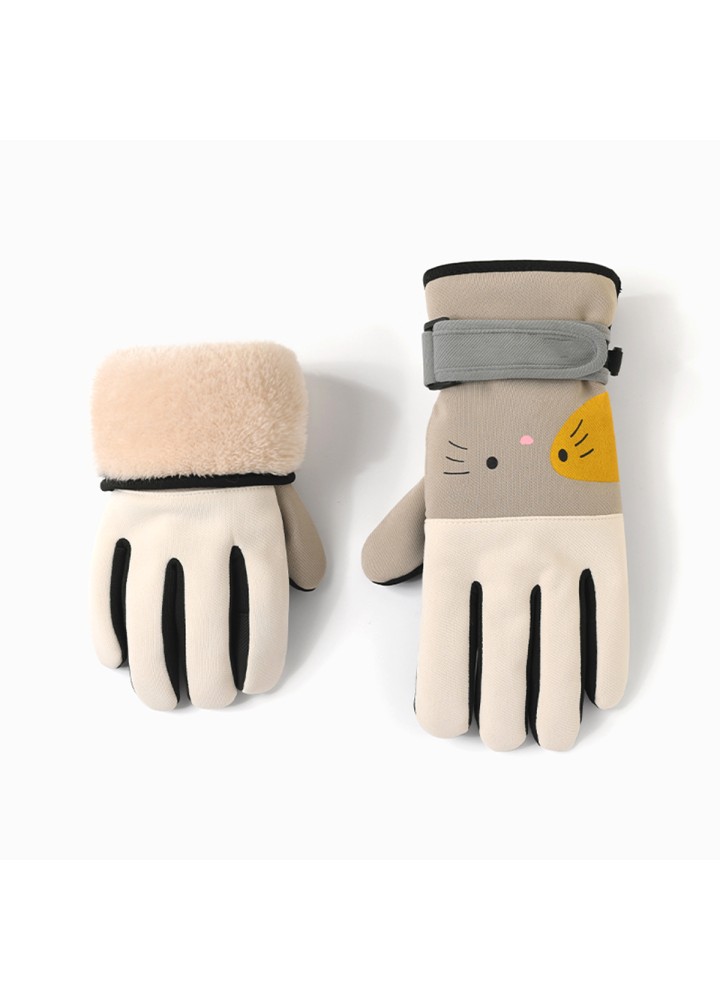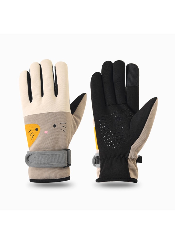 The gloves feature a cute and stylish design with cartoon patterns for added fun and visual appeal. Combining water repellency, slip resistance, fleece lining for warmth, touchscreen operation, and an adjustable wrist, they are both practical and aesthetically pleasing, making them ideal for winter cycling and outdoor activities.